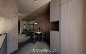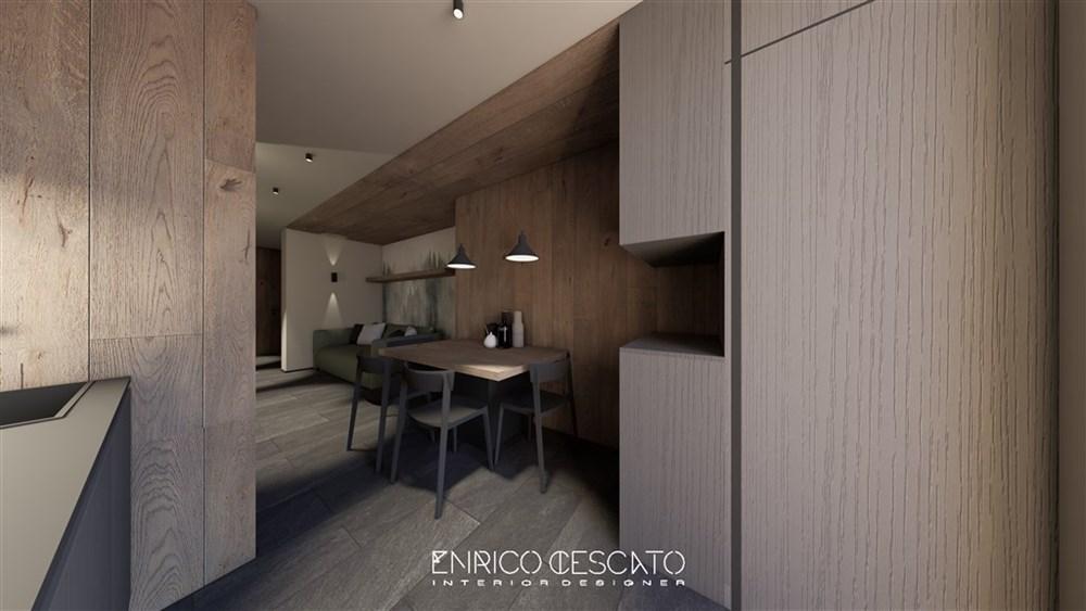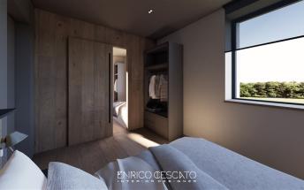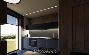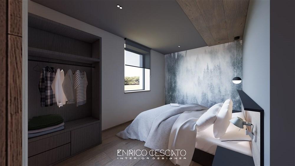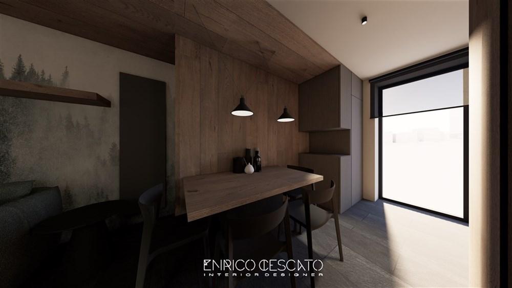 Bilo 4 Pec – přízemí 47 m2: 1 ložnice s manželskou postelí s výhledem na Monte Crostis (směr Stali di Modesto), , obývací pokoj s rozkládacím gaučem pro 2 osoby, kuchyňský kout a sociální zařízení, terasa 15 m 2 s výhledem na sjezdovky