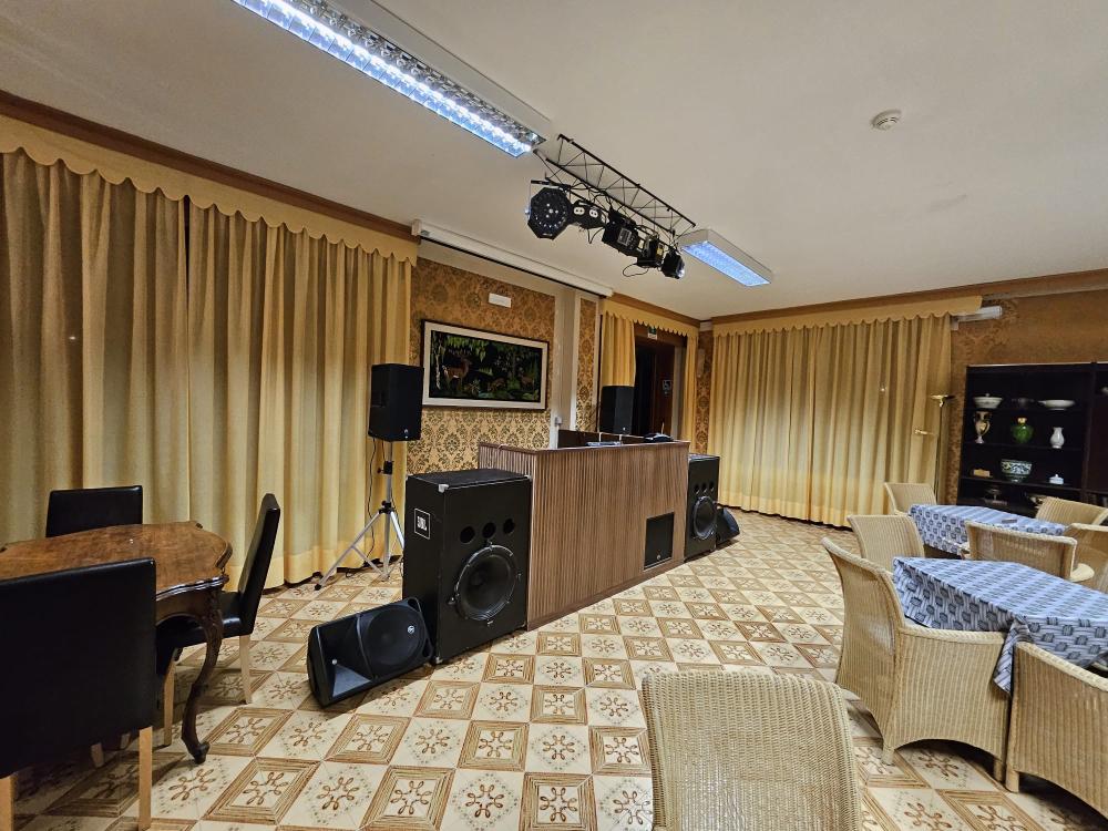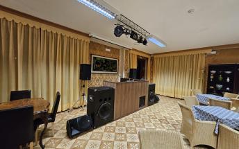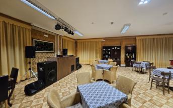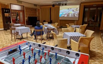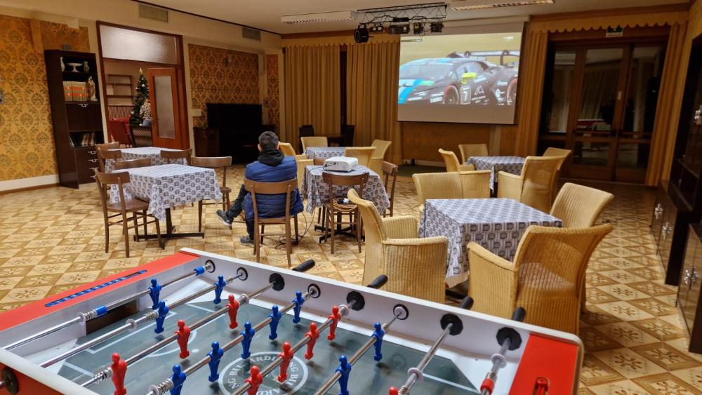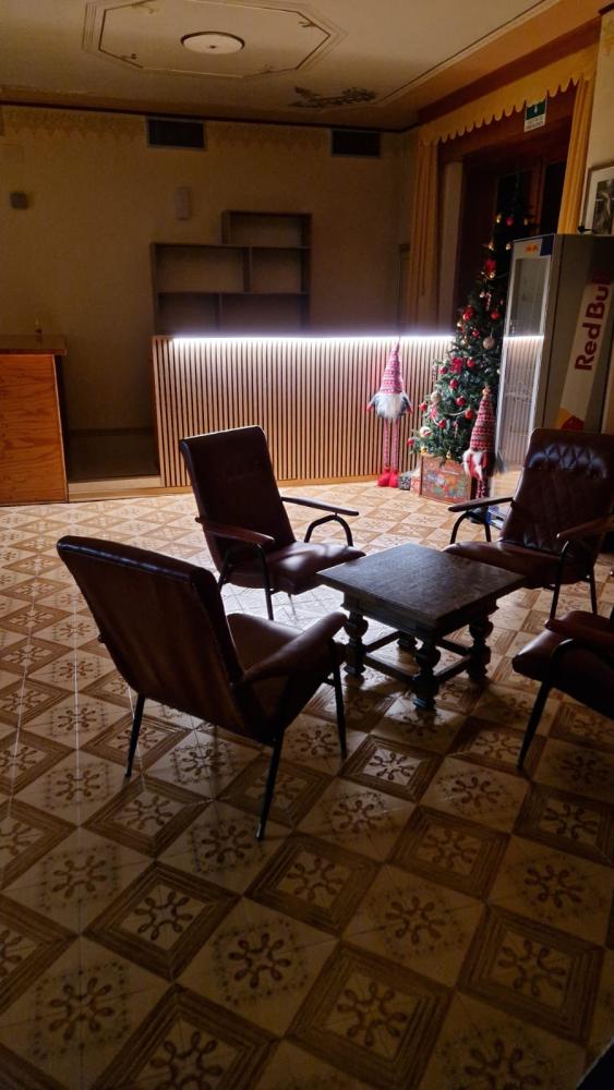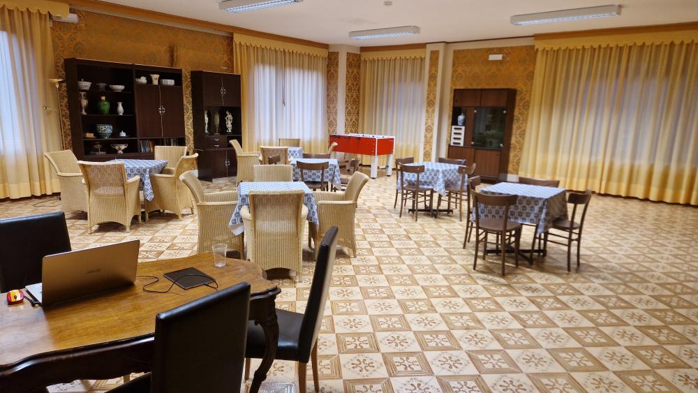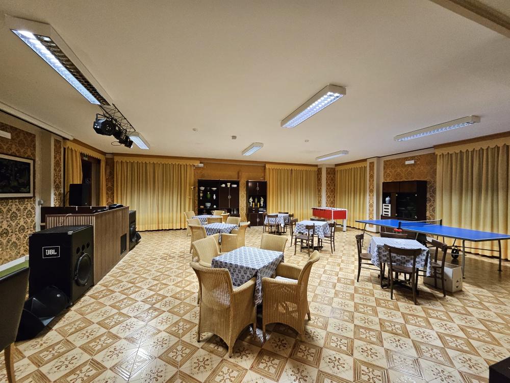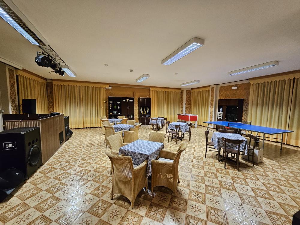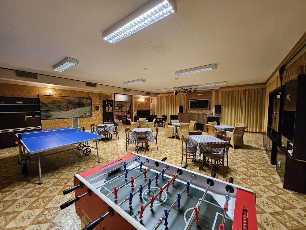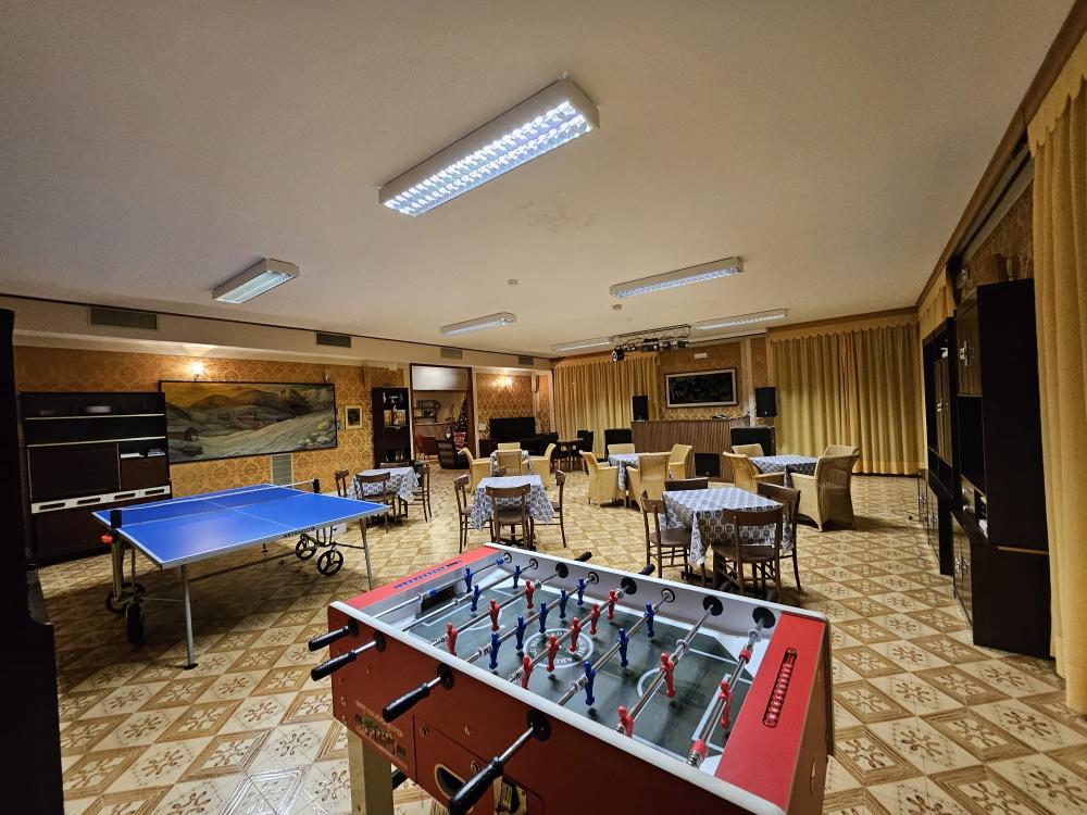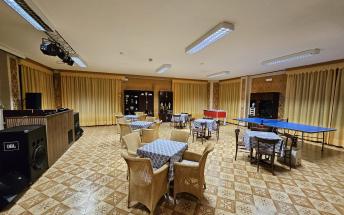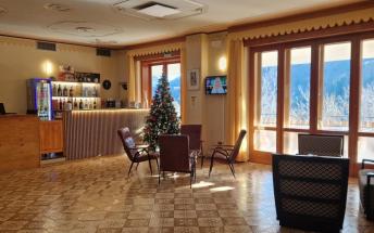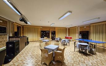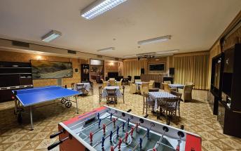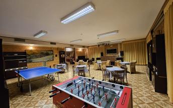 Recepce, bar, jídelna, velké společenské prostory, automat na nealko nápoje, internet WiFi pouze v prostorách recepce, úschovna lyží, výtah