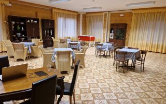 Večeře - formou samoobslužné jídelny s výběrem ze 3 teplých předkrmů (1 polévka a 2 druhy těstovin), 2 hlavních jídel s přílohou, salátový bufet, dezert či ovoce formou bufetu, voda v ceně, ostatní nápoje za poplatek